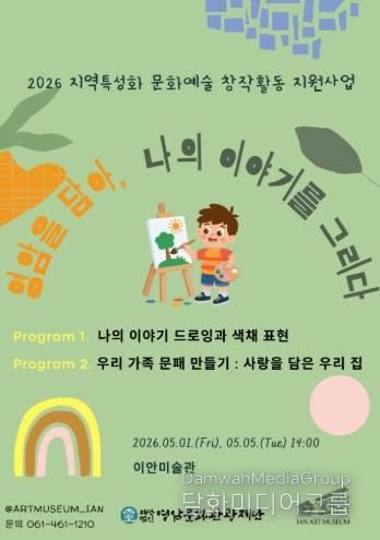시민행정신문 강갑수 기자 | (재)영암문화관광재단은 오는 5월 1일과 5월 5일 오후 2시, 이안미술관에서 ‘영암을 담아, 나의 이야기를 그리다’라는 주제로 문화예술 교육 프로그램을 진행한다.
