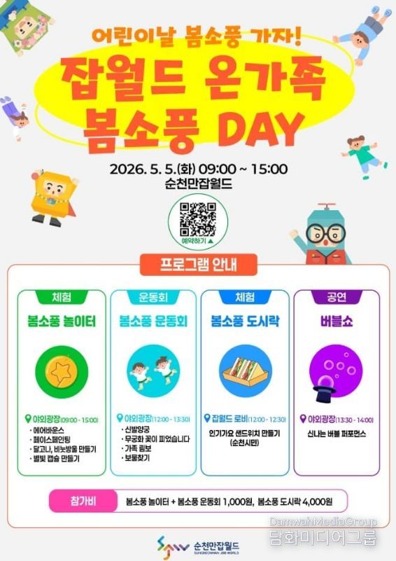 순천만잡월드 관계자는 “봄날 소풍처럼 온 가족이 함께 즐기고 어린이날의 소중한 추억을 만들 수 있도록 행사를 준비했다”며 “많은 시민들의 관심과 참여를 바란다”고 말했다.