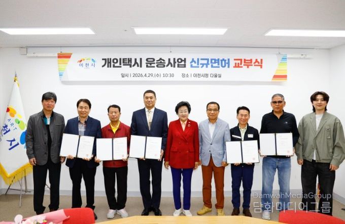 시민행정신문 강갑수 기자 | 이천시는 29일 시청 다올실에서 개인택시운송사업 신규 면허증 교부식을 개최하고, 심사를 통해 최종 선정된 5명의 대상자에게 면허증을 전달했다고 밝혔다.