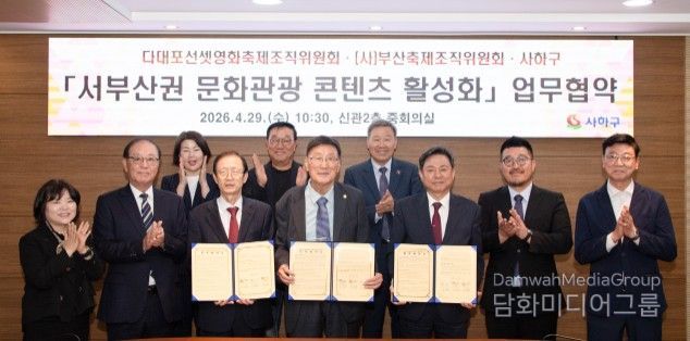 시민행정신문 기자 | 부산 사하구는 서부산권에서 개최되는 축제 및 문화 행사를 중심으로 지역 문화관광 콘텐츠의 발전 가능성을 함께 모색하고 지속가능한 협력 기반을 마련하기 위해 4월 29일 다대포선셋영화축제조직위원회, 부산축제조직위원회와 업무협약을 체결했다고 밝혔다.