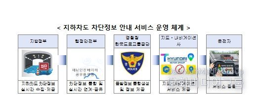 이번 서비스 제공을 위해 행정안전부와 경찰청(한국도로교통공단), 지방정부, 그리고 민간 내비게이션사가 함께 협력한다. 지하차도가 침수되면 지방정부는 현장 통제를 실시함과 동시에 행정안전부의 ‘재난안전데이터 공유플랫폼’에 통제 정보를 전송하고, 이 정보가 경찰청을 거쳐 내비게이션 앱에 실시간 반영되는 방식이다.