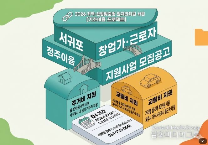 시민행정신문 기자 | 제주특별자치도와 제주콘텐츠진흥원(원장 강민부)은 고용노동부와 함께 서귀포시 창업 생태계 활성화와 우수 인력의 안정적인 지역 정착을 위해 '2026 서귀포 창업가·근로자 정주이음 지원사업' 참여자를 모집한다.