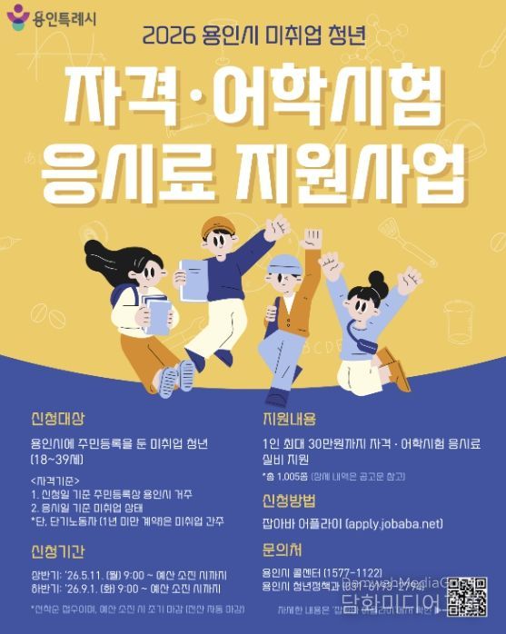 시민행정신문 강갑수 기자 | 용인특례시는 취업을 위해 어학과 자격증 시험 등을 준비 중인 청년을 위해 응시료 30만 원을 지원한다고 30일 밝혔다.