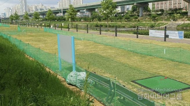 또한 안양천의 자연경관과 조화를 이루는 친환경 공간으로 조성했으며, 천연 잔디 코스와 함께 이동식 화장실, 쉼터 등 이용 편의시설도 갖췄다.