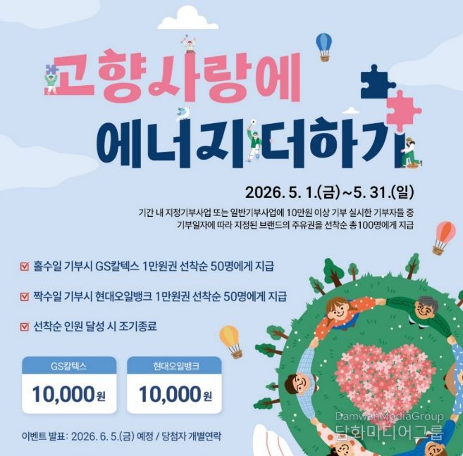 시민행정신문 강갑수 기자 | 원주시는 고향사랑기부제 활성화를 위해 5월 한 달간 특별 이벤트 ‘고향사랑에 에너지 더하기’를 추진한다.