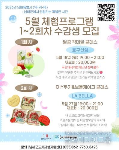 시민행정신문 강갑수 기자 | 남해군 도시재생지원센터가 신록이 짙어가는 5월을 맞아, 군민들에게 일상 속 특별한 미식 경험과 힐링을 선사할 ‘5월 쿠킹클래스’를 마련하고 수강생 모집에 나선다.