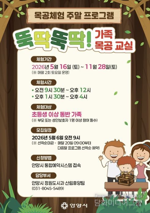 시민행정신문 강갑수 기자 | 안양시는 초등학생과 가족이 함께 참여할 수 있는 목공체험 주말 프로그램인 ‘뚝딱뚝딱! 가족 목공 교실’을 운영한다고 30일 밝혔다.