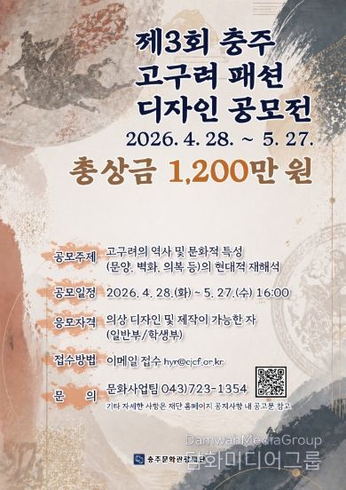 시민행정신문 기자 | (재)충주문화관광재단은 고구려 역사와 문화를 현대적 패션으로 재해석하는 '제3회 충주 고구려 패션 디자인 공모전'을 개최한다.