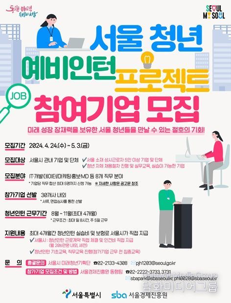 본격적인 사업 시작에 앞서, 시는 오는 4월 24일부터 5월 3일까지 ‘서울 청년 예비인턴 프로젝트’에 참여할 기업을 모집한다.