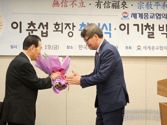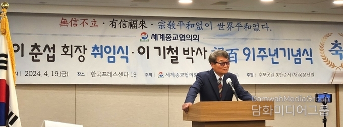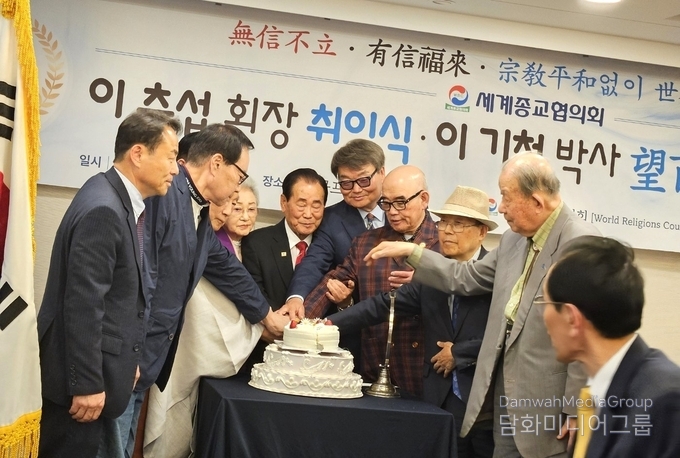 이날 열린 세계종교협의회 회장 취임식은 초 종파를 떠나서 종교 관계자들이 모인 가은데 성대히 거행됐다.