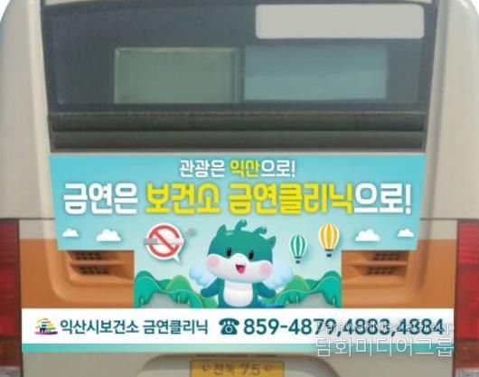 광고 이미지는 '관광은 익산으로, 금연은 보건소 금연클리닉으로'라는 내용이 담겼고, 차량 후면에 부착된다.