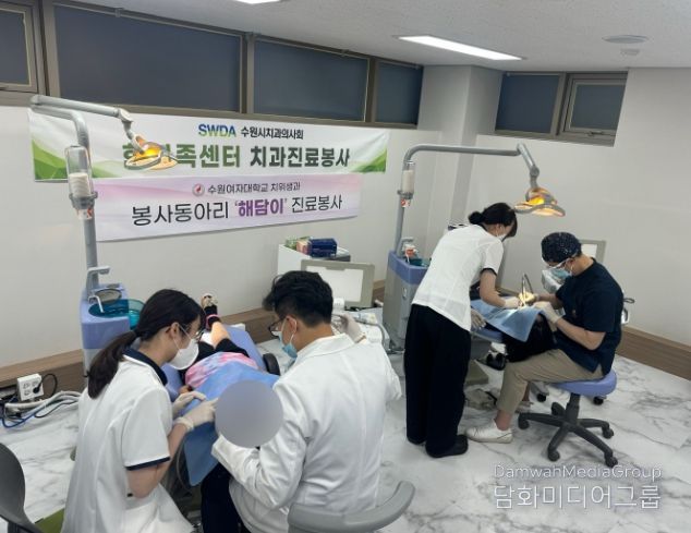 진료 봉사는 ‘꿈을키우는집’ 보육원 청소년 12명을 대상으로 경기도치과의사회관 한가족센터에서 진행됐다. 민플러스치과의원, 영통주니어치과의원, 미소진치과의원의 의료진과 수원여자대학교 치위생과 학생들이 자원했다.