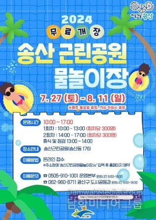 박병규 광산구청장은 “올해 처음 여는 송산근린공원 어린이 물놀이장이 시민에게 시원한 여름을 선물하는 최고의 도심 피서지가 되길 바란다”며 “가장 신나고, 안전한 물놀이 공간이 되도록 수질‧안전 관리에도 만전을 기하겠다”고 밝혔다.