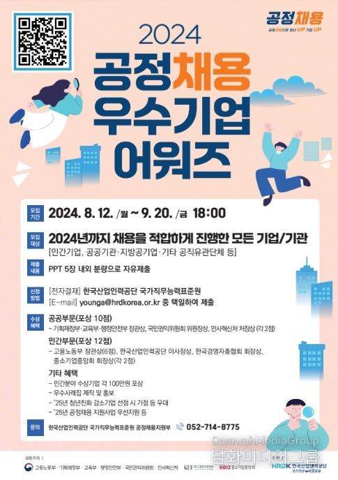 시민행정신문 강갑수 기자 | 고용노동부와 한국산업인력공단은 “공정채용 우수기업 어워즈(구 ‘공정채용 우수사례 경진대회’)”를 개최하여 8월 12일부터 9월 20일까지 기업과 공공기관의 선도적인 채용 사례를 모집한다고 밝혔다.