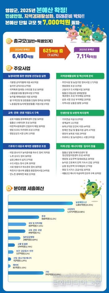시민행정신문 이세훈 기자 | 영암군은 20일 2025년 본예산 7,114억 원을 확정했다.