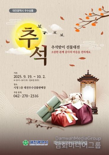 시민행정신문 강갑수 기자 | 대전시는 민족 최대의 명절 추석을 앞두고 지역 우수 상품을 널리 알리고 지역경제 활성화에 기여하기 위해 9월 19일부터 10월 2일까지(주말 제외) 10일간 시청 1층 대전우수상품판매장(TJ마트)에서 ‘추석맞이 선물대전’을 연다.