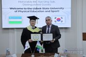 시민행정신문 장규호 기자 | 윤웅석 국기원장이 우즈베키스탄 국립체육대학교 명예박사 학위를 받았다. 지난 4월 13일 오전 11시(현지시간) 우즈베키스탄 국립체육대학교에서 라시드 마트카리모프(Matkarimov Rashid) 총장이 윤웅석 원장에게 명예박사 학위를 수여했다. 이번 명예박사 학위 수여는 윤웅석 원장이 태권도 발전을 위해 쏟은 지속적인 헌신과 더불어, 국기원과 우즈베키스탄 국립체육대학교 간의 긴밀한 협력 및 지원에 대한 감사의 의미로 마련됐다. 또한, 국기원은 2014년부터 백문종 해외 파견사범을 우즈베키스탄에 파견해 국립체육대학교뿐만 아니라 현지 태권도 저변 확대에 크게 기여하고 있다. 이날 학위 수여식이 끝난 후 윤웅석 원장은 라시드 마트카리모프 총장에게 명예 6단증을 수여했으며, 양 기관은 상호 협력 관계를 재확인하는 뜻깊은 시간을 가졌다. 윤웅석 원장은 “우즈베키스탄 국립체육대학교 명예박사 학위는 개인의 영광을 넘어 국기원과 태권도가 함께 이뤄낸 성과”라며 “앞으로도 우즈베키스탄을 비롯한 중앙아시아 지역과 협력을 더욱 강화하고, 태권도의 발전과 가치 확산을 위해 지속적