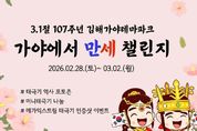 시민행정신문 강갑수 기자 | (재)김해문화관광재단 김해가야테마파크가 3·1절 107주년을 맞아 방문객과 함께하는 ‘가야에서 만세 챌린지’를 오는 2월 28일부터 3월 2일까지 3일간 진행한다. 이번 행사는 1919년 3·1 운동의 의미를 되새기고 나라사랑의 가치를 공유하기 위해 마련됐다. 공원 내에는 대한제국 데니 태극기(1890년), 한국광복군 서명문 태극기(1945년), 경주 학도병 서명문 태극기(1950년) 등 시대별 태극기를 한자리에서 만나볼 수 있는 특별 포토존이 조성된다. 관람객들은 다양한 태극기와 함께 사진을 남기며 역사적 의미를 되새길 수 있다. 또한 3·1절의 참뜻을 함께 나누기 위해 ‘미니 태극기’ 1,000여 개를 선착순으로 배부할 예정이다. 아울러 메가 익스트림 체험객을 대상으로 ‘태극기 인증샷 챌린지’ 이벤트도 운영한다. 22m 고공 사이클 또는 타워 미션 체험 중 태극기 인증사진을 촬영하면 현장에서 추가 체험권 또는 기념품을 제공한다. 김해가야테마파크 권민혁 과장은 “3일간의 연휴를 맞아 공원을 찾는 방문객들에게 3·1절의 뜻깊은 의미를 자연스럽게