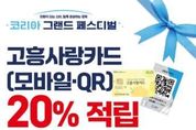시민행정신문 이세훈 기자 | 고흥군은 전국 대규모 할인 축제인 ‘코리아 그랜드 페스티벌’을 기념해 10월 29일부터 11월 9일까지 12일간 모바일 고흥사랑상품권 20% 적립 이벤트를 진행한다고 밝혔다. ‘코리아 그랜드 페스티벌’은 내수 회복을 위해 정부 10개 부처 합동 주관으로 유통업계와 소상공인 등 3만여 업체가 참여하는 국가 단위 대규모 소비축제로, 10월 29일부터 11월 9일까지 12일간 진행된다. 고흥군은 전국적으로 진행되는 코리아 그랜드 페스티벌에 발맞춰 지역 소비 및 상권 활성화를 위해 모바일 고흥사랑상품권 적립률을 5% 상향해 총 20% 특별 적립 이벤트를 마련했다. 행사 기간 모바일 고흥사랑상품권을 결제하면 결제금액의 20%를 적립할 수 있으며, 적립된 캐쉬백은 가맹점에서 일반 상품권과 동일하게 사용할 수 있다. 모바일 고흥사랑상품권은 ‘지역상품권 chak’ 앱을 통해 충전하며, 고흥사랑카드 또는 chak 어플 QR코드를 이용해 가맹점에서 사용할 수 있다. 군은 이번 20% 특별 적립 이벤트가 11월 6일부터 9일까지 4일간 진행되는 제5회 고흥유자축제의 성공에도 큰