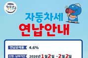 시민행정신문 강갑수 기자 | 울산 남구는 오는 2월 2일까지 올해 1월 자동차세 연납 신청을 접수한다고 밝혔다. 자동차세 연납은 매년 6월과 12월 두 차례 정기 납부하는 자동차세를 일시에 납부하면 납부 시기에 따라 세액을 공제해 주는 제도로 지난해와 동일하게 1월 연납은 연세액의 약 4.6%가 공제된다. 자동차세 연납 신청은 차량 소재지 관할 구청에 직접 방문하거나 전화로 신청 또는 인터넷(위택스)으로도 가능하다. 기존 연납한 차량은 다음 해에 별도로 신청하지 않아도 납부서가 발송되며, 자동차를 새로 등록한 경우에는 별도 신청이 필요하다. 납부 기한은 2월 2일까지이며 미납 시 연납은 취소되고 6월과 12월에 기존세액으로 정기분 자동차세가 부과된다. 납부 방법으로는 △전국 금융기관 고지서 납부 △금융기관 CD/ATM기에서 본인 통장, 현금카드, 신용카드 조회 및 납부 △금융기관 방문 없이 모바일페이, 위택스, ARS, 지방세입계좌 및 가상계좌 이체 등 다양한 방법으로 편리하게 납부할 수 있다. 남구 관계자는 “주민들의 납세편의를 위해 ‘큰 글씨 자동차세 연납 납부서’ 를