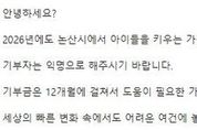 시민행정신문 강갑수 기자 | 논산의 새해를 매년 감동으로 물들인‘익명의 기부천사’가 올해도 어김없이 찾아왔다. 지난 2020년부터 6년째 논산시에 기부를 이어온‘익명의 기부천사’는 올해도 2억 7,300만원을 기탁했으며, 총 누적기부액은 14억 9,465만원에 달한다. 기부자는 이번 기탁금을 전달하며 “세상의 빠른 변화 속에서도 어려운 여건에 놓인 아이들이 자신의 가능성을 키워갈 수 있도록 보탬이 되고 싶다”는 진심 어린 마음을 전했다. 특히, ‘우리가 있기에 내가 있다’는 뜻의 아프리카어 ‘우분투(Ubuntu)’정신을 언급하며, 개인의 행복이 공동체의 행복으로 연결된다는 공생의 가치를 강조했다. 올해는 기부자의 뜻에 따라 지원 대상과 체계가 한층 확대됐다. 기존 18세 미만 자녀를 둔 차상위계층뿐 아니라, 교육급여 수급 가구까지 포함해 총 156가구가 혜택을 받는다. 지원기간도 기존 5개월에서 12개월로 늘어나, 취약계층 아동 가구가 1년 내내 조금 더 안정된 생활을 누릴 수 있게 됐다. 백성현 논산시장은 “매년 이어지는 고액 기부에 다시 한번 감사드린다”며