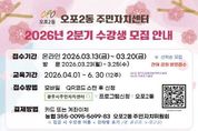 시민행정신문 강갑수 기자 | 광주시 오포2동 주민자치센터는 오는 4월 1일 개관을 앞두고 3월 13일부터 20일까지 ‘2026년 2분기 주민자치 프로그램’ 수강생 924명을 선착순 모집한다. 오포2동 주민자치센터는 지난 2022년 오포읍에서 분동된 이후 3년 만에 양벌로 336에 새롭게 조성됐다. 시는 오는 26일 개관식을 개최한 뒤 4월 1일부터 본격적인 운영에 들어갈 예정이다. 이에 따라 그동안 인근 지역 시설을 이용해야 했던 주민들의 불편이 해소되고 생활권 내에서 주민자치 프로그램을 이용할 수 있는 여건이 마련됐다. 이번 2분기 프로그램은 4월부터 6월까지 3개월간 운영되며 건강·스포츠 강좌, 문화·예술 강좌, 교육·기술 강좌, 어린이 강좌 등 총 41개 과정으로 구성됐다. 수강 신청은 3월 13일부터 20일까지 광주시 주민자치센터 누리집을 통한 온라인 접수 방식으로 진행된다. 다만, 정원 미달 강좌에 한해 3월 23일부터 25일까지 오포2동 주민자치센터에서 현장 방문 접수도 추가로 실시할 계획이다. 수강료는 강좌별로 3개월 기준 5만4천 원에서 7만2천 원까지이며, 국가유공자와 장애인, 한부
