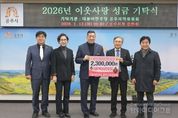 시민행정신문 강갑수 기자 | 공주시는 지난 13일 시청 집현실에서 더불어민주당 공주지역위원회가 지역의 어려운 이웃을 돕기 위해 성금 230만원을 기탁했다고 밝혔다. 이날 기탁식에는 김명환 사무소장과 이지은 사무실장, 권흥길 보좌관 등 관계자 4명이 참석했으며, 최원철 시장과 차담을 나누며 나눔의 의미를 함께했다. 더불어민주당 공주지역위원회는 연말연시를 맞아 지역사회 취약계층을 돕기 위해 당원 100여 명이 십시일반 정성을 모아 이번 성금을 마련했다. 특히 이번 성금은 설 명절을 앞두고 경제적 어려움을 겪는 이웃에게 실질적인 도움이 되도록 지정기탁 방식으로 전달될 예정이며, 관내 16개 읍면동에서 추천한 23명에게 1인당 10만원씩 지원할 계획이다. 김명환 사무소장은 “당원들의 작은 정성이 모여 마련된 성금이지만, 명절을 앞두고 힘든 시간을 보내는 이웃들에게 조금이나마 위로가 되기를 바란다”며 “앞으로도 지역사회와 함께하는 나눔 활동을 지속하겠다”고 말했다. 최원철 시장은 “지역을 위해 따뜻한 나눔을 실천해 주신 더불어민주당 공주지역위원회에 감사드린다”며 “기탁된 성금은 취지에 맞게 투명