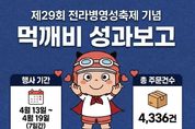 시민행정신문 이세훈 기자 | 800년 역사의 숨결이 살아있는 ‘제29회 전라병영성축제’ 현장에 강진군 공공배달앱 ‘먹깨비’가 지역 상권의 든든한 지원군으로 등판해 축제의 열기를 배달했다. 강진군은 지난 13일부터 19일까지 진행된 병영성축제 기념 먹깨비 할인이벤트를 통해 총 주문 건수 4,336건, 총매출액 1억 1,904만 원을 기록하며 성공적인 성적표를 받아들었다고 밝혔다. 이는 전년 동기 매출액 대비 약 12% 증가한 수치로, 축제가 지역 배달 소비 진작에 실질적인 기여를 한 것으로 분석된다. 이번 이벤트는 축제가 시작되는 주부터 7일 동안 할인 이벤트를 실시하여 평일과 주말에 걸쳐 할인 금액을 달리한 ‘맞춤형 혜택’을 제공했다. 특히 축제 기간 내내 먹깨비를 통한 주문이 이어지며 치킨,피자,족발 등 주요 가맹점을 중심으로 지역 경제에 생기를 불어넣었다. 강진 먹깨비가 꾸준히 사랑받는 이유는 국내 최저 수준인 1.5%의 중개수수료와 가맹점 가입비·광고료 전면 무료라는 ‘착한 정책’ 덕분이다. 이는 대형 배달 플랫폼의 높은 수수료에 지친 소상공인들에게 실질적인 ‘방패’ 역할을 하고