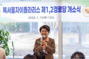 시민행정신문 이존영 기자 | 강북구의회 김명희 의장(번1·2동, 수유2·3동)은 지난 1월 15일, 북서울자이폴라리스 아파트 제1경로당에서 열린 ‘북서울자이폴라리스 아파트 경로당 개소식’에 참석해 어르신들과 함께 경로당 개소를 축하했다. 이번에 개소한 북서울자이폴라리스 아파트 경로당은 강북구 삼양로58길 29(미아동)에 위치해 있으며, 제1경로당과 제2경로당 두 곳으로 구성됐다. 제1경로당은 면적 285.10㎡ 규모로 회원 수 40명이 이용하고 있으며, 2025년 12월 24일 개설돼 현재 최익순 회장을 중심으로 운영되고 있다. 제2경로당은 면적 138.45㎡ 규모로 회원 수 25명이 활동하고 있으며, 같은 날 개설됐다. 안광효 회장이 회장을 맡고 있으며, 두 경로당은 아파트 단지 내 어르신들의 여가와 소통을 위한 공간으로 활용될 예정이다. 김명희 의장은 “북서울자이폴라리스아파트 경로당은 쾌적한 환경과 충분한 공간을 갖춘 모범적인 어르신 여가 공간”이라며 “이곳이 어르신들께 편안한 쉼과 소통의 장이 되고, 이웃 간 정을 나누는 공동체 거점으로 자리매김하길 기대한다”고 말했다. 이어 “2026년 새해의 선물이라