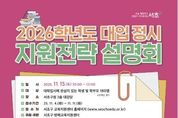 시민행정신문 이존영 기자 | 서울 서초구가 수능 이틀 뒤인 11월 15일 오전 10시 서초구청 2층 대강당에서 수험생과 학부모를 위한 ‘2026학년도 대입 정시 지원전략 설명회’를 개최한다고 밝혔다. 수험생들의 필수 코스로 자리 잡은 서초구의 ‘대입 정시 지원전략 설명회’는 ‘교육1번지’ 서초가 매년 수능 직후 가장 빠르게 여는 입시 설명회다. 올해는 국내 최고 수준의 입시 전문가 2명이 120분간 핵심 전략을 압축해 전달하는 ‘올인원(All-in-One)’ 특강으로 진행될 예정으로 수능 직후 빠르게 정시 정보를 얻을 수 있는 자리인 만큼 수험생과 학부모들의 높은 관심이 예상된다. 설명회 1부에서는 임성호 종로학원 대표이사가 ▲2026 정시 합격선 예측 ▲의대정원 축소로 인한 ‘사탐런’(이과생의 사회탐구 응시) 변수 ▲무전공 선발 확대의 파급효과 등 분석으로 수험생들이 급변한 정시 환경 속에서 자신의 위치를 파악하고 전략적으로 지원할 수 있도록 돕는 시간이 마련된다. 이어서 2부에서는 장문성 종로학력개발원장이 ▲대입 일정 체크리스트 ▲대입 경쟁률 예측 ▲수도권 주요 대학 정시 모집요강 등 분석을 통해 수험생과 학부모가 반드