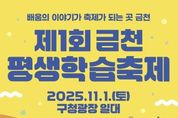 시민행정신문 이존영 기자 | 금천구는 11월 1일 오전10시 금천구청 광장 일대에서 ‘제1회 금천평생학습축제’를 개최한다고 밝혔다. 축제는 ‘배움의 이야기가 축제가 되는 곳, 금천’을 주제로, 구 개청 30주년과 평생학습도시 지정 12주년을 기념해 마련됐다. 학습자, 동아리, 기관과 단체가 함께 어우러져 그동안의 학습 성과를 나누고 주민이 즐길 수 있는 학습문화 축제다. 축제 공간은 금천구 도시브랜드인 ‘행복도시, 학습도시, 문화도시, 상생도시’ 4개 구역으로 나뉘어, 공연·체험·전시·홍보 등 51개 프로그램이 운영된다. 관람객들은 각 도시를 여행하듯 공간을 이동하며 다양한 프로그램을 체험하고, 스탬프를 모으면 학습 이벤트 참여 기회를 얻을 수 있다. 주 무대인 썬큰광장에서는 시흥3동 주민자치 프로그램 ‘신바람 노래교실’의 축하공연을 시작으로, 금천시민대학과 평생학습 동아리들의 공연이 이어진다. 오후 1시 개막식에는 금천시민대학 ‘바른 자세와 모델워킹’ 수료생들의 특별 공연과 브라스 밴드 무대가 펼쳐져 현장을 더욱 빛낼 예정이다. 구청 광장에서는 인공지능(AI) 면접 체험, 디지털 그림그리기(페인팅