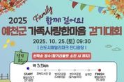 시민행정신문 기자 | 예천군에서는 오는 25일 오전 9시 30분부터 호명읍 신도시패밀리파크 잔디광장에서 ‘2025 예천군 가족사랑한마음 걷기대회’ 가 열린다. 예천군체육회가 주최·주관하고 예천군이 후원하는 이번 걷기 행사는 패밀리파크 잔디광장에서 출발해 범우리공원과 실개천을 거쳐 다시 패밀리파크 잔디광장으로 돌아오는 약 3.5km 코스로 진행된다. 참가 제한이나 별도 신청 없이 누구나 행사 당일 오전 9시 30분까지 행사장을 찾아 현장 접수하면 되며, 선착순으로 진행되는 접수는 참가 리플릿이 소진되면 마감된다. 걷기 코스 완주와 더불어 참가 리플릿을 활용한 스탬프 미션에 성공한 모든 참가자에게 완보기념품이 증정되고 인생네컷 가족사진 만들기 및 놀이체험 부스 운영, 댄스공연 및 버블쇼 등 풍성한 프로그램도 준비되어 있다. 또한 걷기 코스 안에 댄스존, 비누방울존, 어린이보물찾기존 등 다양한 이벤트존이 마련되어 있어 걷는 즐거움을 배가시키고, 행사 막바지에는 푸짐한 경품추첨도 예정되어 있다. 이철우 예천군체육회장은 “이번 대회가 가족 사랑과 건강을 되새기고, 지역 주민 간 더욱 친밀한 유