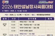 시민행정신문 기자 | 태안군이 민족 대명절 설을 맞아 2월 12일부터 18일까지 태안종합실내체육관에서 ‘위더스제약 2026 태안 설날장사 씨름대회’를 개최한다. 대한씨름협회가 주최하고 태안군씨름협회가 주관하는 이번 대회는 32개 팀 291명의 선수가 참가해 모래판 위 최강자를 가린다. 군은 민족 전통 경기인 씨름을 알리고 군민과 관광객이 함께 즐기는 축제의 장을 마련할 계획이다. 대회는 12일 예선을 시작으로 13일 여자부 개인전 및 단체전 결정전이 열린다. 14일 소백장사, 15일 개회식 및 태백장사, 16일 금강장사, 17일(설날) 한라장사 결정전이 이어지며 대회 마지막 날인 18일 백두장사 결정전이 펼쳐진다. 박진감 넘치는 경기는 KBS 1TV와 KBS N SPORTS를 통해 전국에 생중계된다. 군은 많은 주민이 씨름의 묘미를 즐길 수 있도록 가로등 현수기와 전광판 등을 활용해 대회 일정을 대대적으로 홍보한다. 방문객 편의를 위해 대회 기간인 12일부터 18일까지 7일간 셔틀버스가 운행된다. 노선은 태안공영버스터미널을 출발해 다이소 앞, 우체국사거리, 이석민 피자 등을 거쳐 종합실내체육관까지