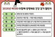 시민행정신문 기자 | 광명시는 시민들의 건강한 생활습관 형성과 걷기 문화 확산을 위해 ‘제13회 다함께 광명해요 건강 걷기 챌린지’를 진행한다. 이번 챌린지는 오는 11월 1일부터 15일까지 15일간 열리며, 광명시민과 광명시에 소재한 직장인이면 누구나 참여할 수 있다. 참가자는 기간 동안 총 10만 보를 걸으면 되며, 1일 최대 1만 보까지만 인정된다. 참여 방법은 간단하다. 10월 29일부터 워크온(WalkOn) 앱을 설치하고 광명시 공식 커뮤니티에 가입한 뒤 ‘제13회 건강 걷기 챌린지 참여하기’를 눌러 걷기를 시작하면 된다. 단, 목표 걸음을 달성한 시민은 ‘응모하기’ 버튼을 눌러 참여를 완료하면 된다. 누적 걸음 수 목표를 달성한 참여자 중 추첨으로 100명에게 모바일 문화상품권 5천 원권 1매를 지급한다. 당첨자 발표와 상품 지급은 11월 17일부터 11월 21일까지 진행할 예정이다. 나기효 건강위생과장은 “매회 많은 시민이 참여하는 ‘다함께 광명해요 건강 걷기 챌린지’는 일상 속 건강한 습관을 형성할 좋은 기회다”며 “시민들이 걷기를 통해 건강도 챙기고, 작은 선물도 받아
