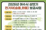 시민행정신문 강갑수 기자 | 여수시가 교통부문 탄소중립 실현과 대기질 개선을 위해 2026년 상반기 전기자동차 구매보조금 지원사업을 추진한다. 올해 상반기 지원 규모는 전기승용차 400대, 전기화물차 90대로, 지난해보다 1.5배 이상 확대됐다. 차종별 보조금은 기후에너지환경부의 차종별 차등 지원 계획에 따라 전기 승용차는 259만~1,101만 원, 전기화물차는 462만~2,030만 원까지 지급된다. 특히 올해는 3년 이상 운행한 개인이(개인사업자, 법인 제외) 내연기관 차량을 전기차로 교체할 경우, 최대 130만 원의 전환지원금이 추가로 지급된다. 단, 가족 간 증여나 판매 차량은 제외된다. 또한 ▲차상위 이하 계층·소상공인(국비 지원액의 20~30%) ▲농업인 10% ▲청년(만19~34세) 20% ▲전기택시 250만 원 ▲택배 차량 10% ▲다자녀 가구(자녀 수에 따라 국비 최대 300만 원) 등 다양한 추가 지원 혜택도 마련됐다. 신청 대상은 신청일 기준 3개월 이상 여수시에 주소를 둔 시민 또는 여수시에 본사·지사 등이 있는 법인·기관으로, 개인·법인·기관당 1대만 지원된다. 구