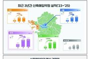 시민행정신문 이세훈 기자 | 도심에서 살 수 있는 집을 기다려온 국민을 향한 반가운 변화가 시작된다. 국토교통부와 한국토지주택공사(LH)가 ‘25년 신축매입 약정 5만 4천호를 확보하며, 주거 수요가 집중된 수도권과 서울을 중심으로 도심 주택 공급이 한층 속도를 내게 됐다. 이번 성과는 계획에 그치지 않고, 국민이 실제로 집을 만나는 시점을 앞당기는 기반이 될 것으로 기대된다. 이번 성과는 실수요가 높은 수도권에 4만 8천호*(LH 43,519호, 지방공사 4,517호)가 집중됐고, 이 중 서울에만 1만 5천호(LH 10,910호, 지방공사 3,711호)를 확보했다는 점에서 의미가 크다. ‘25년 신축매입임대 사업 실적 및 ’26년 주요 정책방향은 다음과 같다. ' ➊ 수도권 내 공급 가시화 ' ‘25년 실적은 최근 3년간의 추세와 비교할 때 압도적인 성장세를 기록했다. 전국 기준으로는 ‘23년 대비 약 6배를 기록했으며, 서울은 4배 이상, 경기는 12배 이상 증가했다. 국토교통부는 이번에 확보된 역대 최대 약정 물량을 바탕으로 올해 서울 1만 3천호를 포함해 수도권 4만 4천호 이상