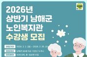 시민행정신문 강갑수 기자 | 남해군 노인복지관은 2026년 상반기 프로그램 수강생을 2월 2일부터 25일까지 모집한다고 밝혔다. 상반기 프로그램은 평생교육 2강좌, 취미여가 11강좌, 건강증진 3강좌 등 총 15강좌로 구성됐으며, 3월 3일부터 6월 26일까지 운영된다. 세부적인 프로그램은 스마트폰교육, 노래교실, 고고장구반, 손발 마사지 등 다양한 교육이 준비되어 있으며 자세한 사항은 남해군 홈페이지에서 확인 가능하다. 수강생은 선착순으로 모집하며, 수강신청 인원 기준 미달시 해당 프로그램은 폐강된다. 수강료는 강좌당 5천원으로 교재비와 재료비는 별도다. 기초생활수급자, 국가유공자, 등록장애인은 무료이며 차상위계층은 수강료의 50%가 감면된다. 수강을 원하는 군내 60세 이상 어르신은 남해군 노인복지관(055-860-3723)으로 방문하시거나 팩스(Fax : 860-3725)로 신청하면 된다. 남해군 관계자는 “어르신들의 건강하고 활기찬 노후생활을 도모할 수 있도록 건강 증진, 평생교육, 취미생활 등의 다양한 분야별 프로그램를 마련했다”며 “준비한 프로그램 수강을 통하여 어르신들이 신체적·정신적으로 더