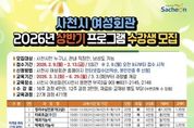 시민행정신문 강갑수 기자 | 사천시 여성회관에서는 2026년 상반기 프로그램 수강생을 2월 9일부터 13일까지 사천시 여성회관 홈페이지를 통해 인터넷으로 선착순 모집한다. 이번 2026년 상반기 프로그램 모집 규모는 27개 과정 471명이다. 특히 올해는 홈베이킹, 일본어왕초보 과정이 새롭게 개설됐으며, 직장인을 위한 야간반 8개 과정도 운영하고 있다. 자격증 취득 7개 과정(정리수납전문가(2급), 힐링타로전문상담사, 제과기능사, 떡제조기능사, 바리스타), 기술·취미·창업 15개 과정(홈패션, 의류제작초급·중급, 천아트, 홈베이킹 등), 어학 5개 과정(중국어입문·생활회화, 영어초급·중급, 일본어왕초보)으로 구성되어 있으며 교육 기간은 과정에 따라 12주 또는 16주 동안 운영되며, 이론과 실습을 병행한 교육으로 진행된다. 또한, 프로그램 수강료 감면 대상은 저소득층, 다문화가정, 국가유공자, 등록장애인, 다자녀가정, 65세 이상, '사천시 공공기관 등의 유치 및 지원에 관한 조례'에 따른 사천사랑카드 소지자로 1인 2과목까지 면제가 가능하다.