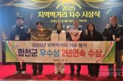 시민행정신문 강갑수 기자 | 합천군은 농림축산식품부와 한국농수산식품유통공사(aT)가 주관한 2025년 지역먹거리 지수 평가에서 한국농수산식품유통공사 사장상(우수상)을 받으며, 2년 연속 우수 지자체로 선정됐다고 10일 밝혔다. 합천군은 경남도 내 군 단위에서 유일한 연속 수상에 성공하며, 합천군의 먹거리 정책 추진이 전국적으로도 높은 평가를 받고 있음을 다시 한번 입증했다. 합천군은 지역 생산·유통·소비의 연계를 강화하는 과정에서 학교급식에 지역 로컬푸드를 안정적으로 공급해 학생들에게 신선하고 안전한 식재료를 제공한 점이 우수한 성과로 인정받았다. 또한 지자체장의 정책 추진 의지, 다품목 생산체계 구축 지원, 농가 조직화 교육 등 핵심 지표에서 우수한 점수를 받아 올해 평가에서도 우수상을 이어갔다. 시상식은 12월 9일(화) 대전 인터시티호텔에서 전국 지자체 관계자 등 120여 명이 참석한 가운데 열렸다. 현장에서는 농림축산식품부 장관상과 aT 사장상이 순차적으로 수여됐으며, 지자체별 정책 성과를 담은 소감 영상이 상영되어 큰 호응을 얻었다. 군 관계자는 “이번 수상은 합천의 농업과 농촌이 한 단계 더 성장하기 위해 군민, 생산자, 관계기관이 함께 걸어온 결