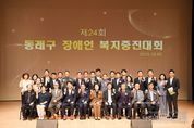 시민행정신문 강갑수 기자 | 부산 동래구는 지난 1일 (사)부산광역시동래구장애인협회(회장 남기정)가 동래문화회관 대극장에서 장애인의 사기 진작과 인식 개선, 사회참여 분위기 확산을 위한 ‘제24회 동래구 장애인복지증진대회’를 개최했다고 밝혔다. 이날 행사에는 장준용 동래구청장을 비롯해 국회의원, 동래구의회 의장 및 의원, 부산시의회 의원 등 주요 내빈과 장애인 및 가족, 후원자, 자원봉사자 등 약 850여 명이 참석했다. 행사는 한국자폐인사랑협회의 관현악 공연과 징검다리주간이용센터의 율동 공연으로 막을 올렸다. 1부에서는 ▲유공자 표창 ▲후원금 전달 ▲대회사 및 축사 등으로 진행됐으며, 2부에서는 ▲축하공연 ▲경품추첨 등 다채로운 화합 한마당이 펼쳐졌다. 남기정 회장은 "오늘 하루가 장애인분들께 작은 위로와 기쁨이 되기를 바라며, 이번 행사를 통해 모두가 더욱 소통하고 화합하는 자리가 되길 바란다”라고 전했다. 장준용 동래구청장은 "장애인과 비장애인이 함께 어우러져 행복한 포용사회를 만들어 가는 것이 중요하다”라며 “앞으로도 장애인의 복지 증진과 권익 향상을 위해 적극적으로 노력하겠다”라고 말했다.