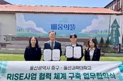 시민행정신문 강갑수 기자 | 울산 중구와 울산과학대학교 RISE사업단이 4월 15일 오후 2시 중구평생학습관 배움의 뜰 강의실에서 ‘RISE사업 평생교육 협력체계 구축’ 업무협약을 체결했다. 이번 협약은 지역 수요에 기반한 평생교육을 활성화하고 다양한 협력 모형(모델)을 발굴해 공동으로 추진하기 위해 마련됐다. ‘RISE(지역혁신중심 대학지원체계) 사업’은 지자체의 지원과 대학의 우수한 인적·물적 자원을 연계해, 지역과 대학이 함께 공동의 위기를 극복하고 상생 발전을 도모하는 협력 사업이다. 이번 협약을 바탕으로 중구와 울산과학대학교 RISE사업단은 △성인 학습자 개방형 전문대학 연계 운영 △중구형 평생교육 협력 모형(모델) 구축 등에 나설 예정이다. 중구는 지역 내 평생교육 연결망(네트워크)과 행정 업무 등을 지원할 방침이다. 울산과학대학교는 대학의 교육 역량과 전문 기반 시설(인프라)을 바탕으로 지역 맞춤형 학습-고용 선순환 체계를 구축하고, 성인 학습 전문 과정 및 RISE 문화체험 프로그램 등을 운영할 계획이다. 중구 관계자는 “지역 대학교와 협력해 주민들에게 더욱
