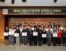 시민행정신문 강갑수 기자 | (재)부산광역시 남구장학회(이사장 김태유)는 지난 3월 14일 남구청 대강당에서 장학생과 학부모 등 80여 명이 참석한 가운데 2026년도 남구장학회 장학 증서 수여식을 개최했다. 남구장학회는 올해 고등학생과 대학생을 대상으로 성적 우수·희망·재능장학금과 학교 밖 청소년 장학금 등 다양한 분야에서 총 43명의 장학생을 선발하고 약 7천만 원의 장학금을 지원했다. 김태유 남구장학회 이사장은 “지역인재들이 학업에 전념하고 더 큰 꿈을 펼칠 수 있도록 돕는 것이 장학회의 중요한 역할”이라며 “앞으로도 지역 청소년들의 성장을 지원하는 장학사업을 꾸준히 이어가겠다”고 말했다. 남구장학회는 지역인재 육성을 위해 2017년 4월 출범했으며, 매년 장학사업을 통해 지역 학생들의 학업과 성장을 지원하고 있다. 장학사업에 참여를 희망하는 경우 (재)남구장학회 사무국으로 문의하면 된다.