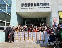 시민행정신문 강갑수 기자 | 용인특례시 곳곳에서 연말을 앞두고 어려운 이웃을 위한 성금 기탁과 김장김치 후원 등이 이어지면서 지역사회 나눔 문화가 확산하고 있다. 원삼면 헌산중 학생들과 학부모들이 14일 학교 운동장에서 ‘김장 나눔 사랑 실천’ 행사를 열고, 직접 담근 김장김치를 어려운 이웃에게 기부했다. 헌산중 학생들이 담근 김장김치 100통은 원삼면 지역사회보장협의체 위원들과 봉사단체 엄지회가 저소득 어르신과 사회복지시설에 전달했다. 기타동호회 아미고스(회장 백남영)는 13일 사랑나눔 기부콘서트를 통해 얻은 수익금 65만원을 보정동에 기탁했다. 보정동 지역사회보장협의체 허정인 위원은 아미고스의 콘서트를 위해 3년째 연습 장소를 후원하고 있으며, 카페 조아인도 무상으로 장소를 대관하고 있다. 허정인 위원은 ”어려운 이웃을 위해 봉사한 마음이 이렇게 뜻깊은 행사로 이어져 뿌듯하다“며 ”앞으로도 지역사회 따뜻한 변화를 위해 계속 힘을 보태고 싶다“고 했다. 수지구 동천동은 13~14일 어려운 이웃을 위한 김장나눔 행사를 열었다. 김장나눔 행사에는 통장협의회, 부녀