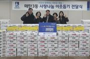 시민행정신문 강갑수 기자 | 수원시 영통구 매탄3동은 지난 4일, 매탄중심상가상인회로부터 설 명절을 맞이해 관내 취약계층을 위한 라면 100박스와 햇반 110박스를 기탁받았다고 밝혔다. 이번 기탁은 설 명절을 앞두고 지역사회에 따뜻한 활력을 불어넣고, 이웃과 함께 정을 나누고자 하는 상인회 회원들의 자발적인 참여로 마련됐다. 기탁된 물품은 매탄3동 행정복지센터를 통해 기초생활수급 가구, 차상위 가구 등 저소득층 이웃들에게 전달되어, 모두가 풍성하고 든든한 명절을 보낼 수 있도록 지원될 예정이다. 정희경 매탄중심상가상인회장은 “설 명절만큼은 우리 주변의 어려운 이웃들이 소외되지 않고 따뜻한 정을 느끼며 든든하게 보내시길 바라는 마음으로 회원들과 정성을 모았다”며, “앞으로도 지역 상인들이 힘을 합쳐 주변을 살피고 나눔을 실천하는 활동에 적극 앞장서겠다”고 전했다. 김병목 매탄3동장은 “매년 명절마다 지역사회를 위한 나눔을 실천해 주시는 매탄중심상가상인회에 진심으로 감사드린다”며 “기탁해 주신 물품은 상인분들의 따뜻한 마음과 함께 관내 어려운 이웃들에게 소중히 전달하겠다”고 감사의 뜻을 전했다. 한편