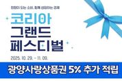 시민행정신문 강갑수 기자 | 광양시는 전국 단위 소비진작 행사인 ‘코리아 그랜드 페스티벌(Korea Grand Festival)’ 기간(2025. 10. 29.~11. 9.) 동안 광양사랑상품권 할인율을 한시적으로 18%로 상향한다고 밝혔다. ‘코리아 그랜드 페스티벌’은 국무조정실, 기획재정부, 행정안전부, 산업통상자원부와 행정안전부, 문화체육관광부 등 관계 부처가 공동으로 추진하는 국가대표 소비축제다. 행사 기간에는 △지역사랑상품권 및 디지털온누리상품권 특별할인 △상생소비복권 (20억 원 규모) 신규 시행 △농·축·수산물·생필품 특별할인 △숙박쿠폰 발급 및 문화유산 무료 개방 등 국민 누구나 참여할 수 있는 다양한 소비 혜택이 제공된다. 이 기간 광양시는 총 40억 원 규모의 광양사랑상품권을 발행하며, 기본 13% 후(後) 캐시백에 5%를 추가해 총 18% 혜택(월 최대 12만 6천 원 적립)을 제공한다. 단, 예산 소진 시 조기 종료될 수 있으며 행사 종료 후에는 기존 13% 할인율로 조정된다. 시는 이번 특별할인을 통해 시민들이 실질적인 소비 혜택을 누리고, 지역 내 자금의 선순환