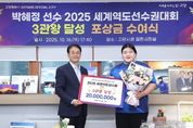 시민행정신문 장규호 기자 | 고양특례시가 지난 16일 ‘2025 국제역도연맹(IWF) 세계역도선수권대회’ 여자 86kg 이상급 3관왕에 오른 박혜정 선수에게 포상금을 수여하며 그간의 노고를 격려했다. 이날 수여식에는 이동환 고양특례시장을 비롯해 교육문화국장, 체육정책과장, 지도자가 참석했으며, 박혜정 선수에게는 격려 포상금 2,000만 원이 수여됐다. 박혜정 선수는 지난 10월 3일부터 12일까지 노르웨이 푀르데에서 열린 세계역도선수권대회에서 인상 125kg, 용상 158kg, 합계 283kg을 들어 올리며 세 부문 모두 금메달을 차지, 대한민국의 유일한 금메달리스트이자 3관왕에 올랐다. 이번 우승은 2024년 바레인 세계역도선수권대회 2위의 아쉬움을 딛고 재기한 값진 성과로, 2023년 리야드 대회에 이어 두 번째 세계선수권 챔피언 타이틀을 거머쥔 쾌거다. 또한 박혜정 선수는 올해 8월 중국 푸저우에서 열린 ‘동아시아역도선수권대회’와 ‘한·중·일 국제역도대회’에서 연이어 3관왕을 차지한 데 이어, 이번 세계선수권에서도 세 부문을 석권하며 올해만 세 차례 국제대회 3관왕의 위업을 달성했다. &nbs