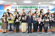시민행정신문 강갑수 기자 | 진주시는 5일 진주시청 3층 문화강좌실에서 ‘2025 진주국제농식품박람회 평가보고회’를 가졌다. 올해 박람회는 ‘농업과 함께하는 힐링 나들이’라는 슬로건으로 16개국, 261개사, 519개 부스의 매머드급 규모로 열려 1480만 달러의 수출계약을 체결하는 성과를 거뒀다. 무엇보다 농업기술 전시로 미래농업의 방향을 제시하며, 다양한 동반행사와 체험 프로그램으로 모두 33만 명의 관람객이 몰려 대성황을 이뤘다. 이날 평가보고회에서는 올해 박람회를 성공적으로 이끈데 기여한 유관기관과 자원봉사단체, 농업인단체 관계자 등 24명에 대한 표창장 및 감사패 수여식도 진행됐다. 표창 및 감사패를 받은 유공자는 △행사 추진부문에 허유정 △행사장 조성부문에 김우상, 조명조, 이경순 △행사 안내부문에 류동열, 권민주, 최연서, 이서영 △행사 체험부문에 김수린, 임수정, 채병준 △부대행사 운영부문에 김갑임, 강순현, 이경식, 정재훈, 서정덕, 이종화 △동반행사 운영부문에 정태명, 최복희, 백선숙, 최기봉, 홍상훈, 한영천, 이태성이다. 특히 진주국제농식품박람회는 세계축제협회 한국