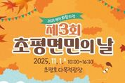 시민행정신문 강갑수 기자 | 초평면축제추진위원회(위원장 윤덕기)가 주최하는 ‘제3회 초평면민의 날’ 행사가 오는 11월 1일 초평호 다목적광장에서 개최된다. 이번 행사는 ‘모두가 하나되는 화합의 장! 초평의 하루!’를 주제로 △한마음 걷기대회 △면민 운동회 △면민 노래자랑 △축하공연 등 다채로운 프로그램을 선보인다. 지역 가수, 풍물단, 지역 단체가 참여한 축하공연도 준비돼 행사에 흥겨운 분위기를 더할 전망이다. 또한, 행사장 곳곳에는 농특산물 직거래장터, 타로, 미용봉사, 시화 전시, 초평면발전협의회 공모전, 드론체험, EM으로 환경을 살리자!, 초평신문 전시홍보장 등 다양한 부스가 마련돼 풍성한 볼거리와 즐길 거리를 제공한다. 해당 행사는 초평면민들의 역량을 결집하고 초평호와 한반도지형 전망 공원 등 초평면의 수려한 자연경관을 대외적으로 널리 알리는 좋은 기회가 될 것으로 보인다. 윤덕기 위원장은 “지난 2회 행사를 통해 면민들의 화합 의지를 다시 한번 확인할 수 있었다”며 “올해는 더욱 풍성하고 내실 있는 프로그램을 준비했으니 많은 관심과 참여를 바란다”고 말했다.