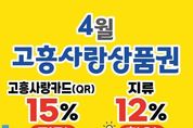 시민행정신문 강갑수 기자 | 고흥군은 지난 1월부터 3월까지 진행한 고흥사랑상품권 특별할인 행사의 뜨거운 성원에 힘입어, 오는 4월 1일부터 한 달간 고흥사랑상품권 할인 혜택을 연장 운영하며 민생경제에 온기를 더한다. 군에 따르면 올해 1월부터 3월까지 고흥사랑상품권 특별할인 행사를 추진한 결과, 판매액이 140억 원을 돌파하며 폭발적인 호응을 얻었다. 이는 전년 동기 대비 판매량이 2배 이상 급증한 수치로, 상품권이 지역 소비 촉진과 상권 회복을 견인하는 등 지역경제 활성화의 핵심 수단으로 자리매김하고 있다. 군은 최근 중동 상황으로 원자재 가격 상승 등 대외 경제 여건 악화로 민생경제 안정의 필요성이 커짐에 따라, 4월에도 고흥사랑상품권 최대 15% 특별할인을 지속 추진하기로 했다. 군은 향후 국비를 추가 확보해 고흥사랑상품권 할인폭을 확대하고, 특별할인 행사를 지속적으로 추진하는 등 지역경제 활성화를 위한 지원책을 더욱 강화해 나갈 계획이다. 4월 행사기간 동안 지류형 고흥사랑상품권은 관내 45개 금융기관에서 12% 할인된 금액으로 구매할 수 있다. 고흥사랑카드 및
