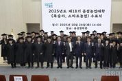 시민행정신문 강갑수 기자 | 음성군농업기술센터는 지난 28일 음성농업대학 학장인 조병옥 군수를 비롯한 농업기술센터 관계자, 수료생 등이 참석한 가운데 ‘2025년도 제18기 음성농업대학 수료식’을 개최했다. 올해 음성농업대학은 복숭아, 스마트농업 2개의 과정을 개설, 지난 3월부터 10월까지 교육생 총 44명을 대상으로 과정별 약 21~22회, 90시간 걸쳐 집합 교육방식으로 진행됐다. 지역농업 전문농업경영인 배출과 농산물 고부가가치 창출 및 지역농업에 발전을 위한 이론과 현장실습 등을 병행하며 현장 대응능력 등 농업 현장의 요구에 맞춘 실질적인 지식과 기술을 습득하는 내용으로 운영됐다. 이날 엄격한 수료 기준을 통과한 복숭아과정 20명과 스마트농업과정 22명 등 총 42명이 수료증을 수여받았다. 또한 우수 수료자에 대한 시상식에서는 이순강(스마트농업 과정)씨가 농촌진흥청장상을, 정기환(복숭아 과정)씨가 음성군수상을 수상했다. 채기욱 군 농업기술센터 소장은 “지역농업 발전을 위해 본업에 바쁘신 와중에도 교육에 참여해 주신 농업인 여러분들에게 감사하다”며 “대학에서 배운 지식을 바탕으로